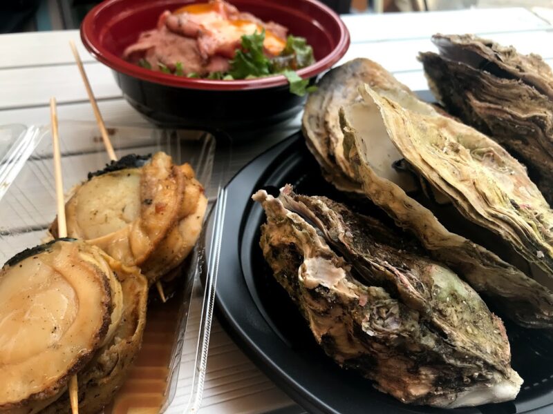 奥尻町の焼きホタテや厚岸町の焼きガキに、紋別市の本ズワイガニの甲羅焼など